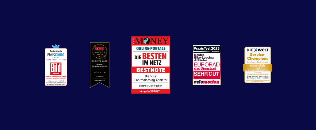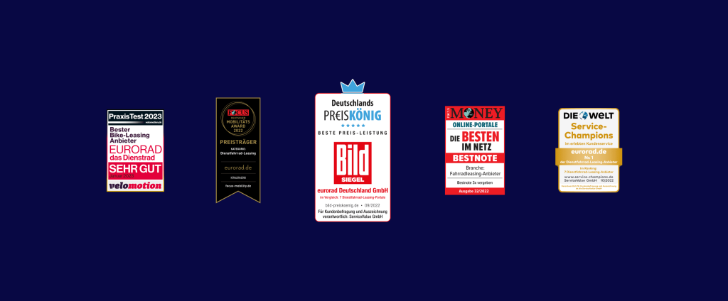 Auszeichnung für eurorad eurorad wurde von verschiedenen Testberichten als bester Bike-Leasing-Anbieter gekürt! Die Tageszeitung DIE WELT, das Magazin FOCUS MONEY mit dem Deutschland-Test und das Fahrrad-Magazin velomotion.de haben alle das Leasing-Angebot von eurorad als herausragend bewertet. Mit eurorad sind Sie beim Thema Bike-Leasing also gut für die neue Saison gewappnet! eurorad mit der besten Preisleistung bei 7 […]